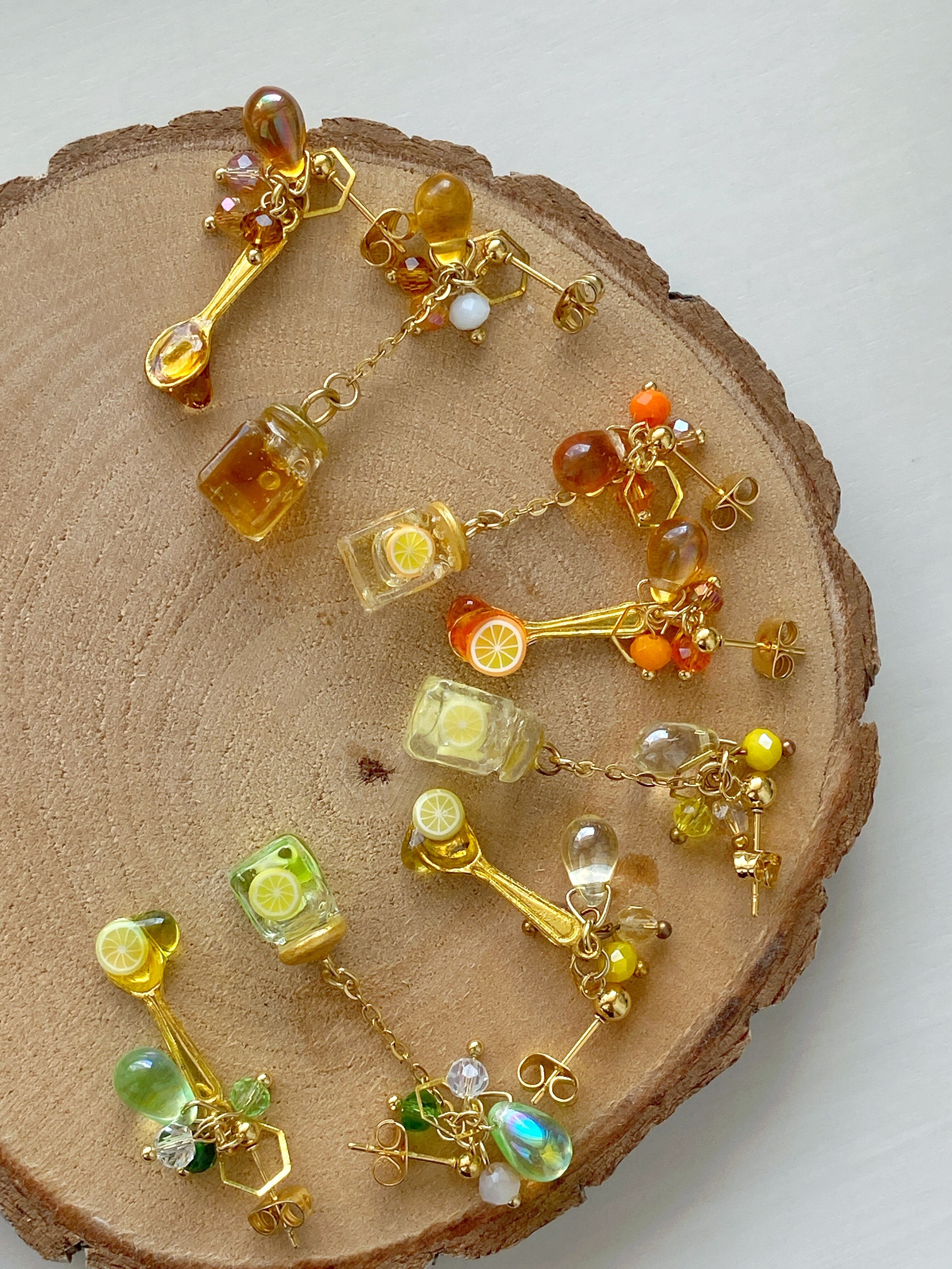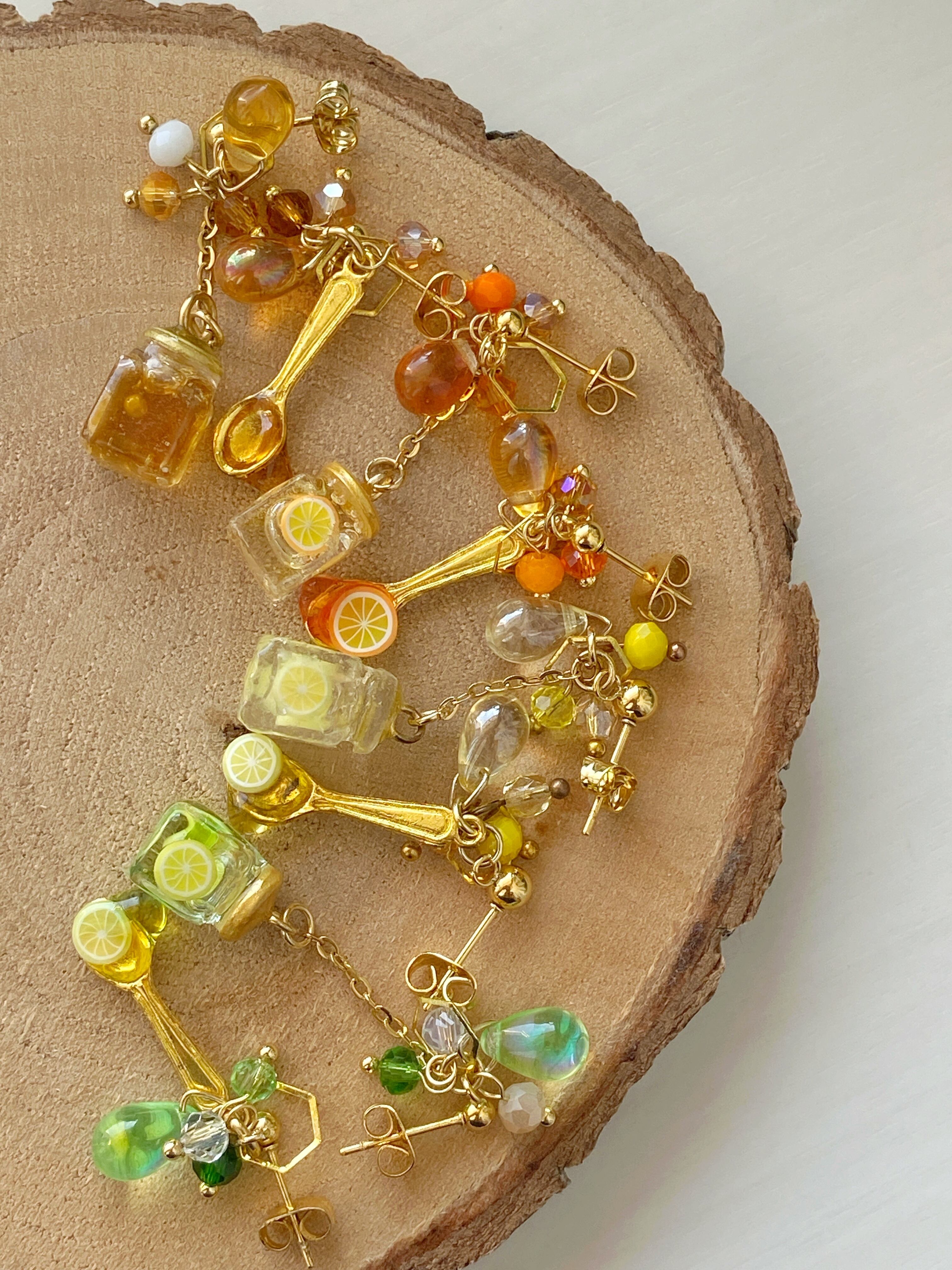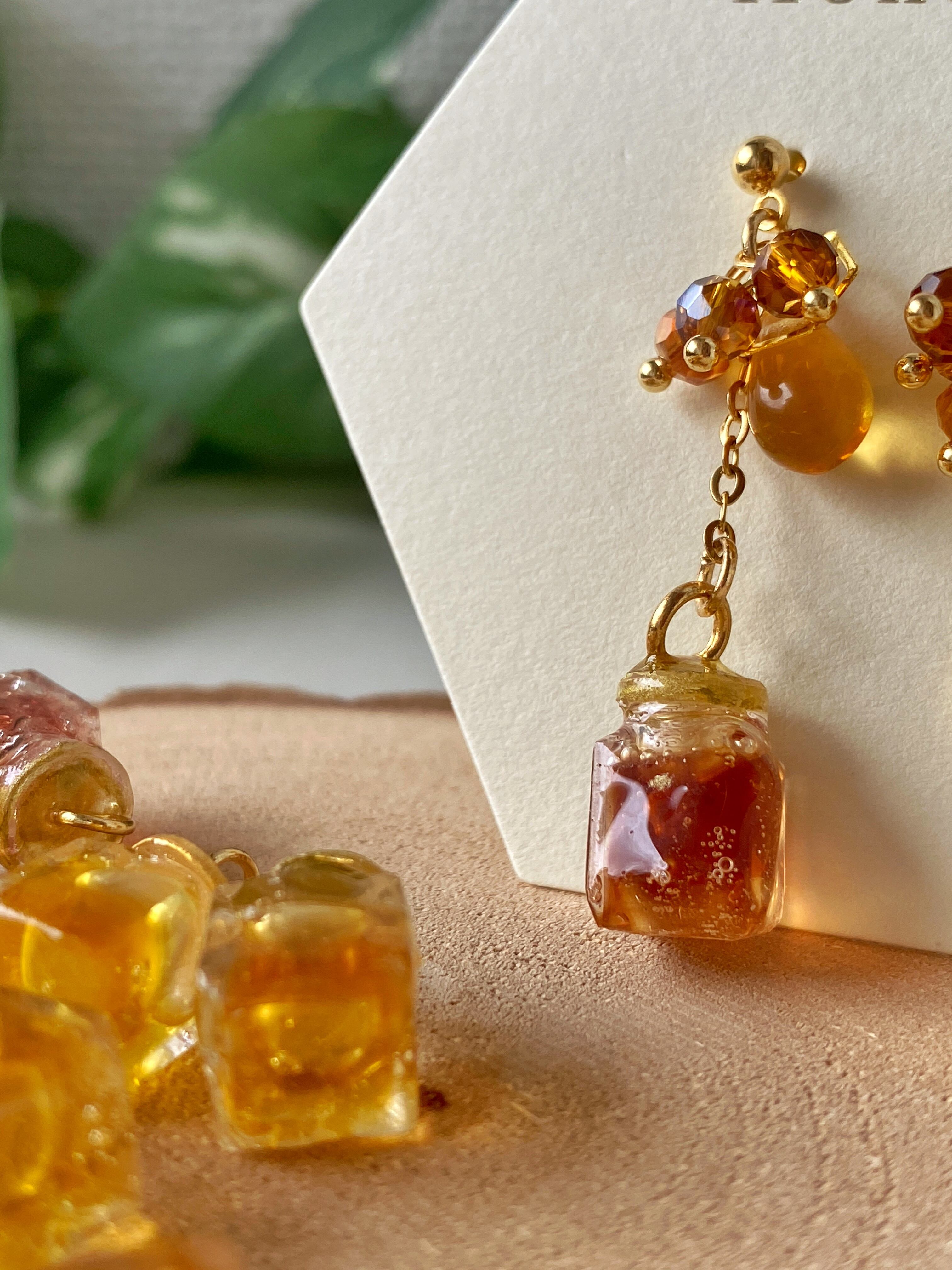 とっても美味しそうで、耳元で揺れる小瓶がたまらなく可愛いアクセサリーです