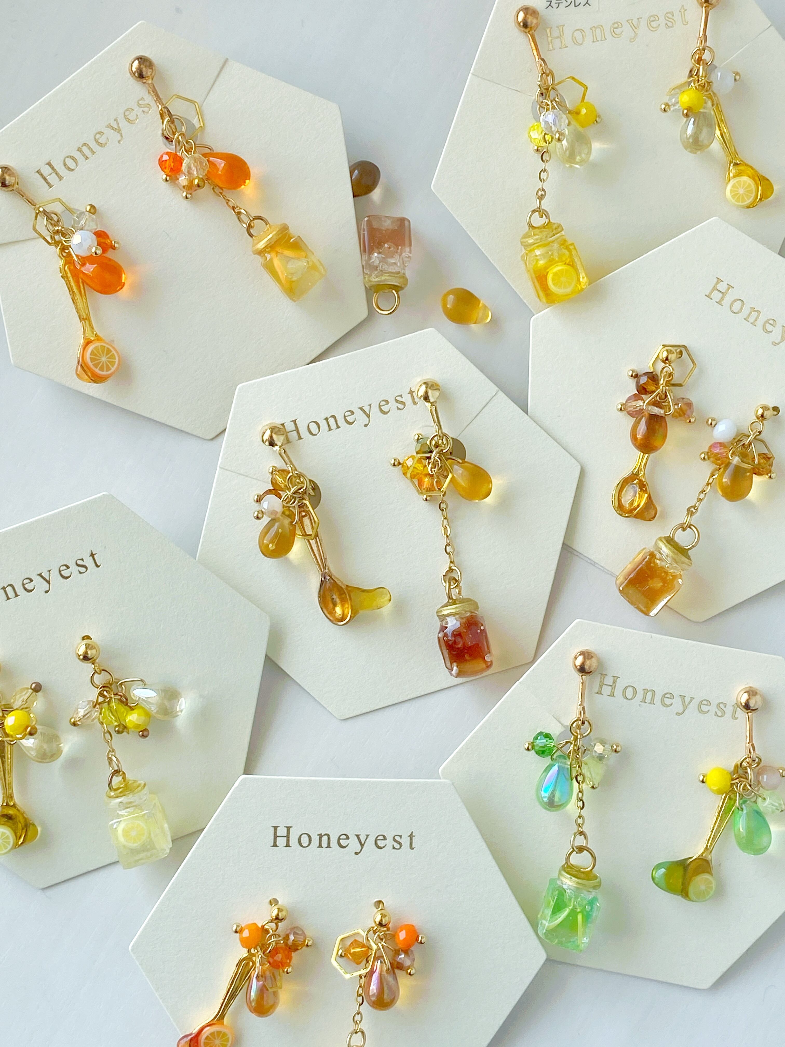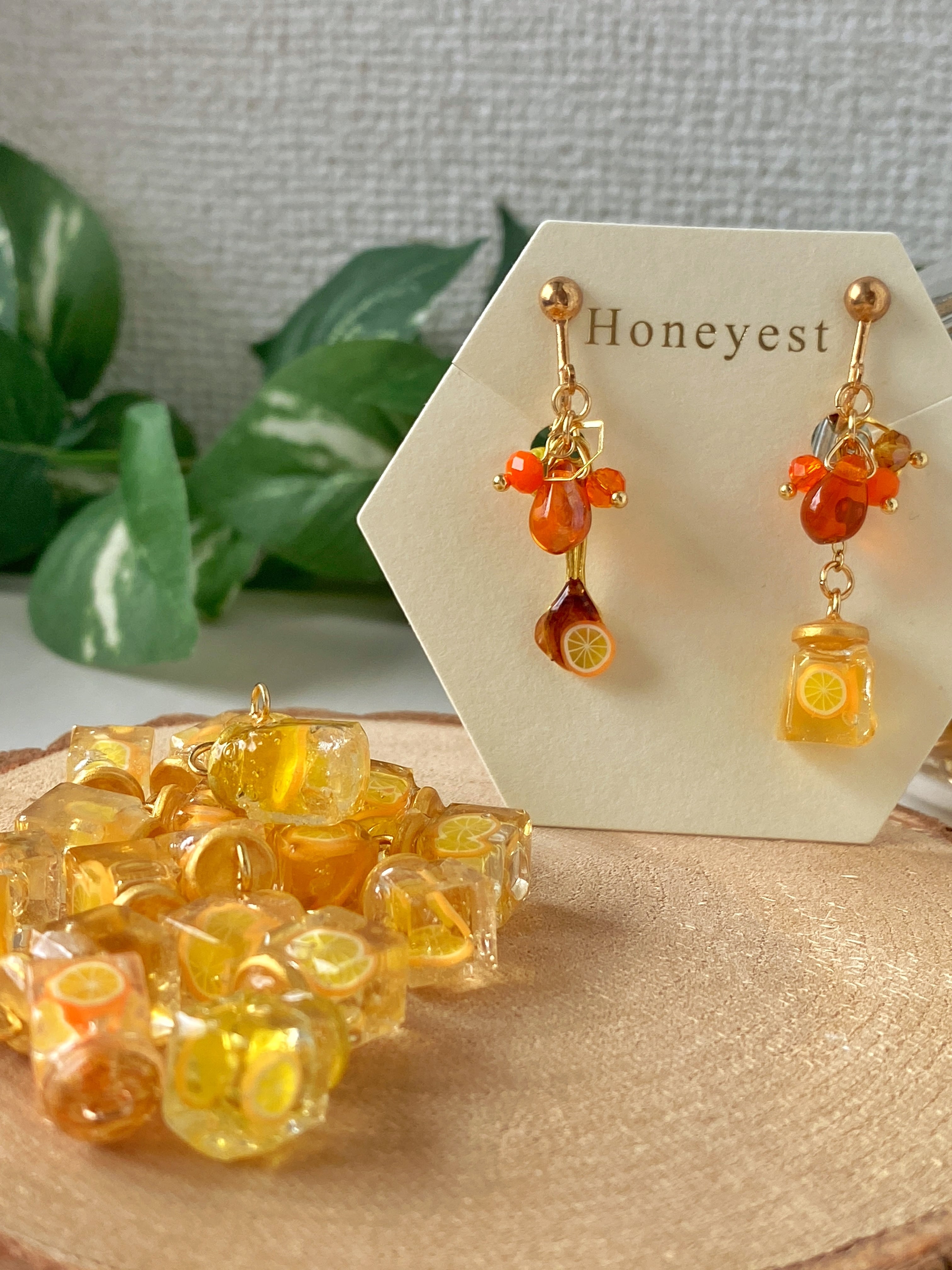 オレンジの蜂蜜小瓶とスプーンのアクセサリーです✨