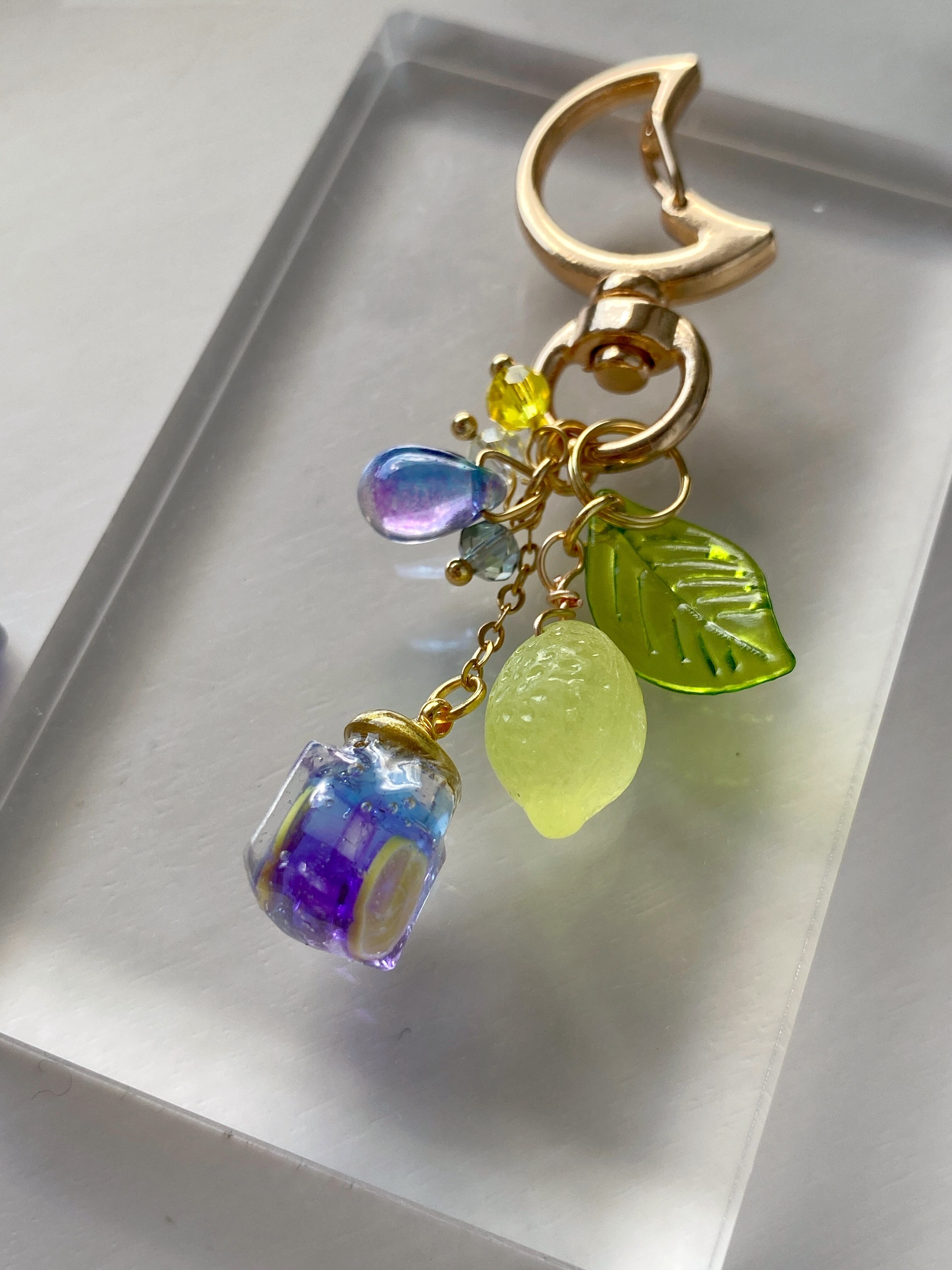 青と紫色に、氷とレモンのパーツを入れて