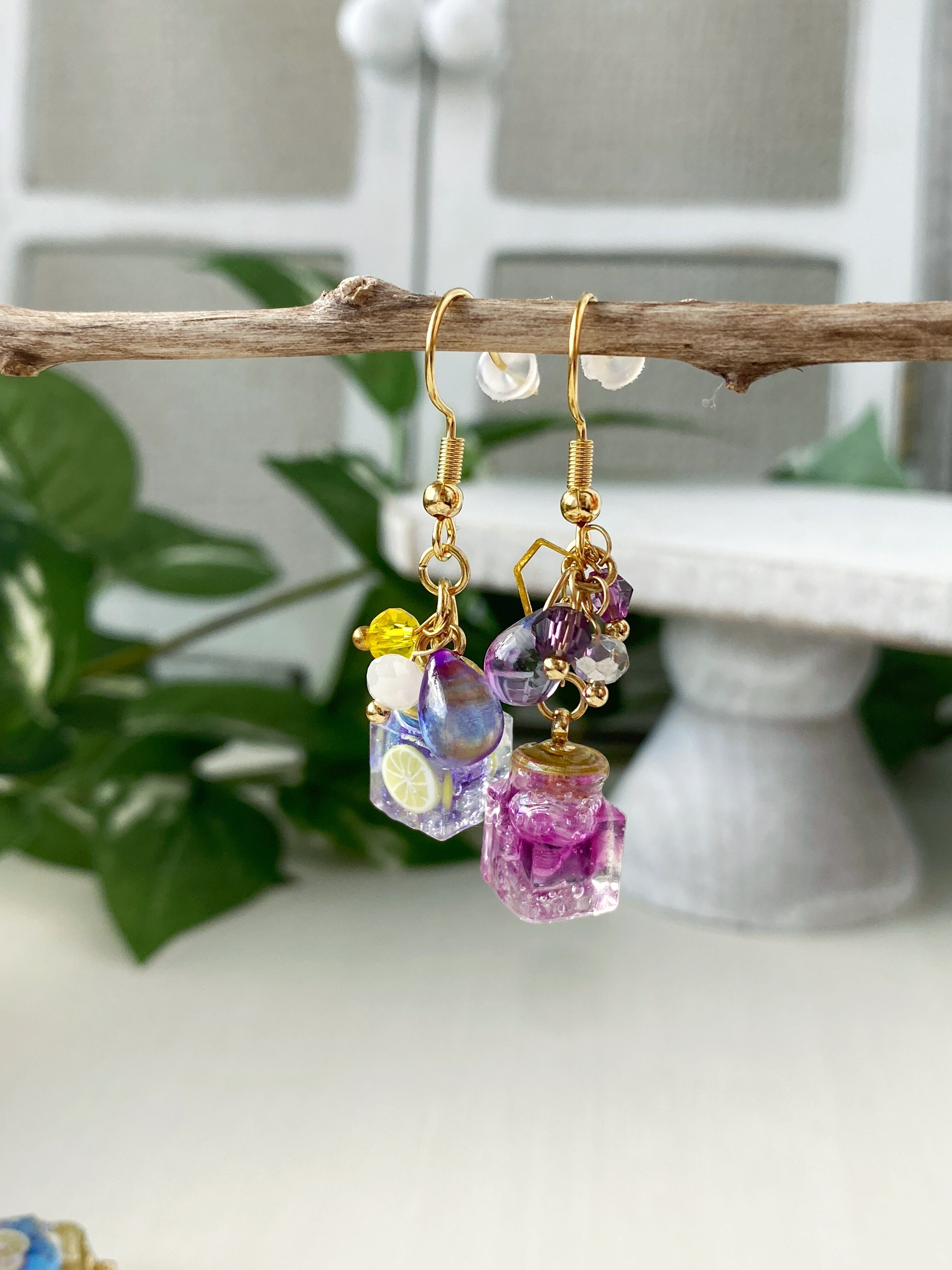 紫と青のグラデーションに、氷とレモンのパーツで爽やかに✨