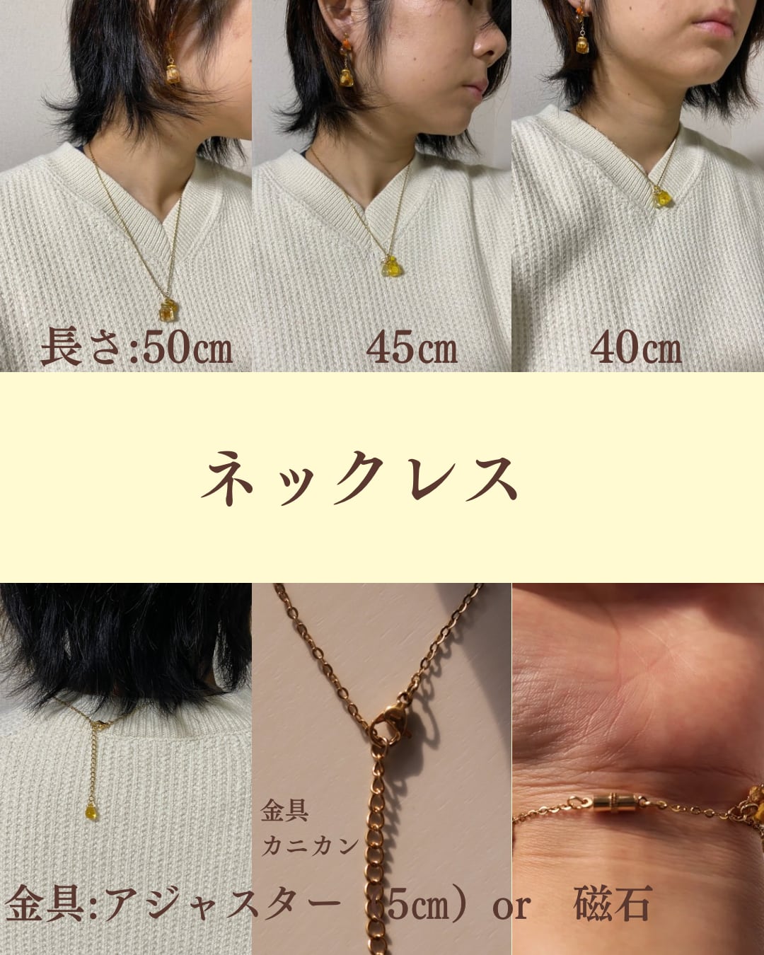 ※ネックレス・ブレスレットは長さと金具の種類についても選んでいただきます